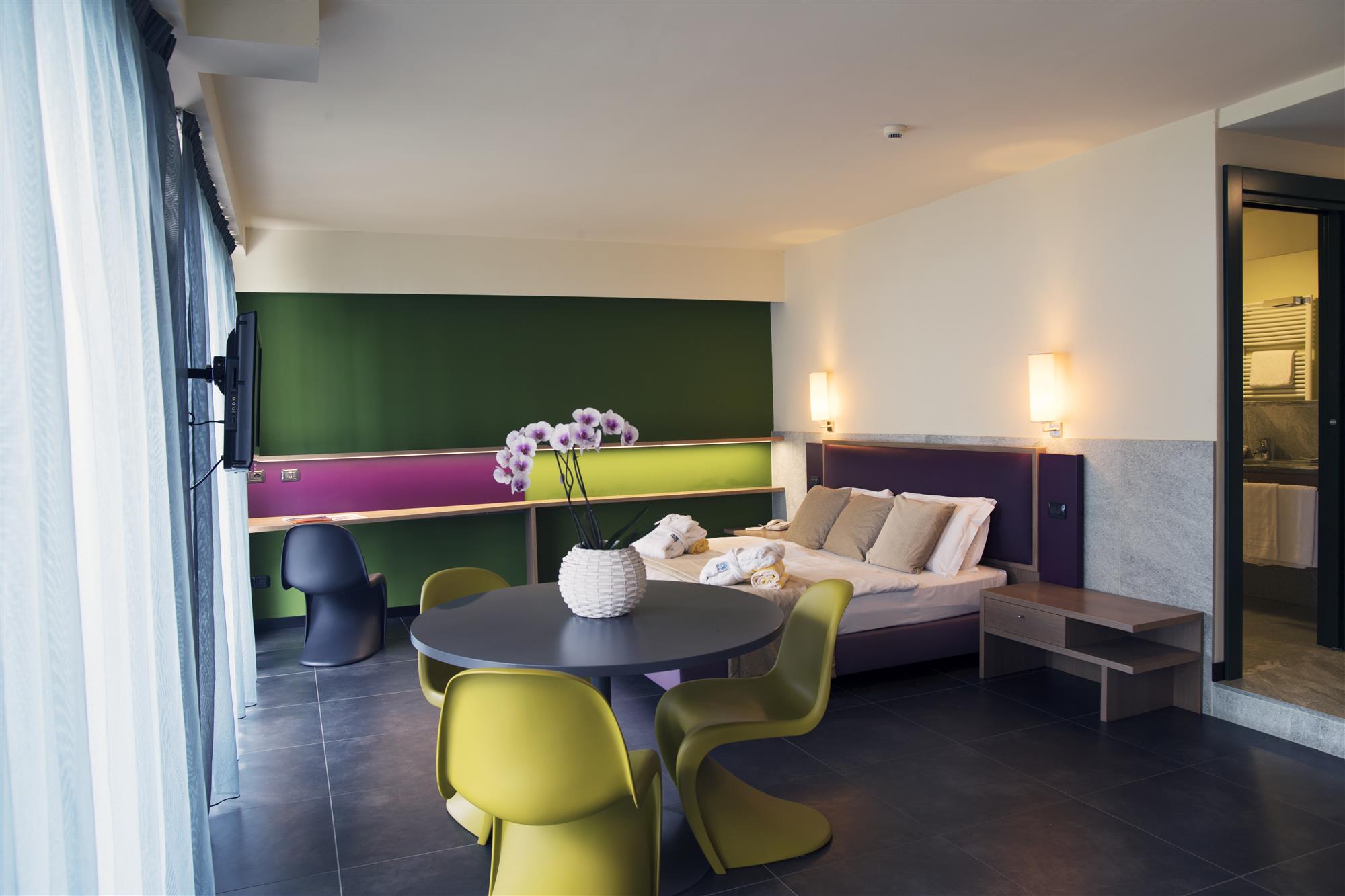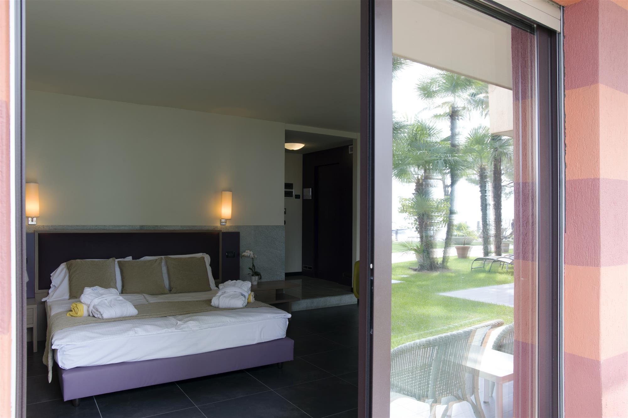 New, spacious lilac and green coloured fancy suite, with ist fl owery, peaceful garden & acces to the beach away from the noise of the Gardesana street. New, spacious green-marble bathroom, living area and terrace directly to the lake with all the newest amenities; free use of a soft beach towel for the beach and kettle to make tea and coffee.
