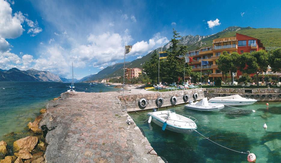 Right on the lake shores of the beautyful lake Garda, without street in front of it, Hotel Du Lac has its own beach which you can reach directly from your room, without crossing the buisy Gardesana street. We offer you the possibility to know the lake from its most comfortable side; maybe with your favourite newspaper, alwas available at the reception, where you can use the internet point free of charge.
